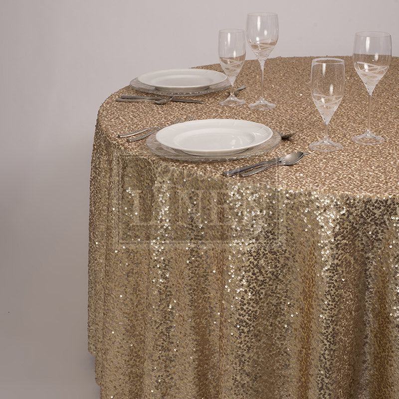 A Champagne Sequin Taffeta Tablecloth is the perfect blend of understated elegance and shimmering luxury. The soft, warm champagne colour provides a refined, timeless backdrop, while the sparkling sequins woven throughout the fabric add a touch of glamour and sophistication, making it an ideal choice for upscale events such as weddings, galas, and formal dinners.