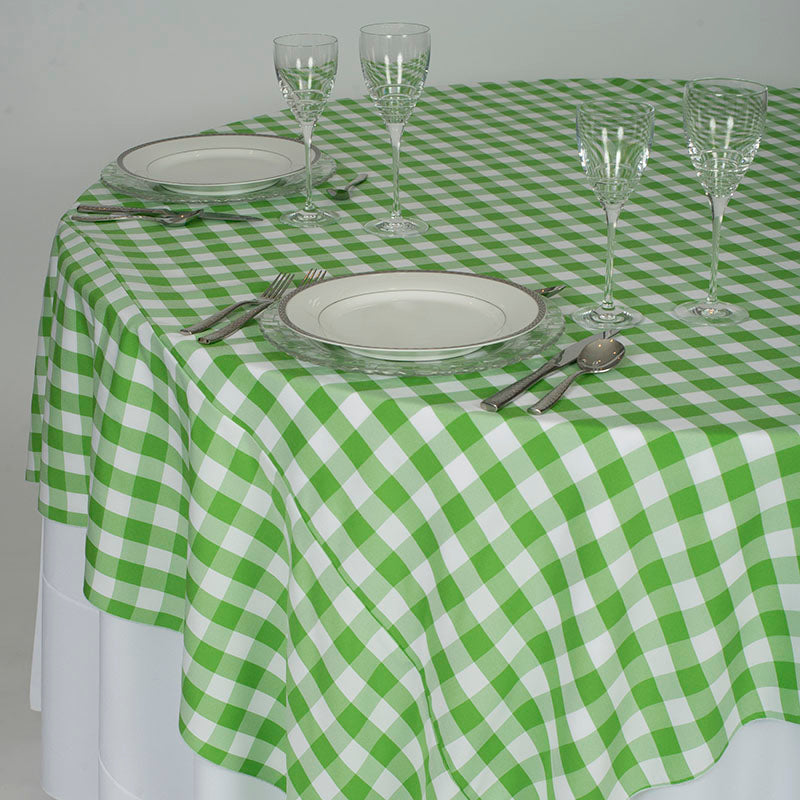 A lime green gingham polyester overlay is a vibrant and playful fabric that brings a fresh, energetic touch to any setting. The bold lime green colour, paired with the classic gingham check pattern, adds a fun, modern twist to the traditional checkered design, making it perfect for casual events, outdoor gatherings, or spring and summer celebrations.