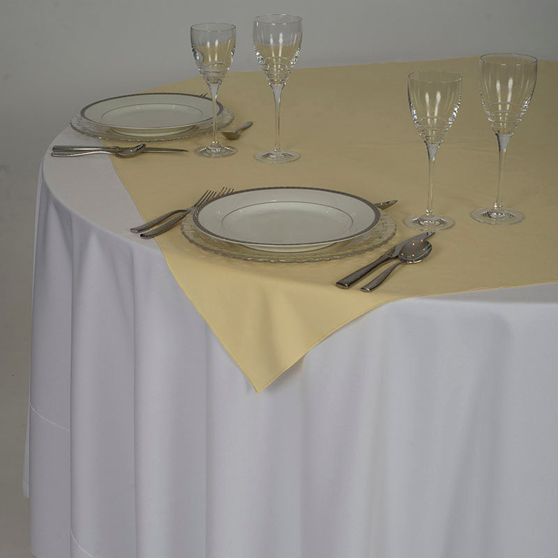 A maize polyester overlay is a vibrant, golden-yellow fabric that adds warmth and a touch of cheerfulness to any event or decor. The maize colour, reminiscent of ripe corn and sunlit fields, brings a natural, earthy elegance while creating a bright and inviting atmosphere. This makes it a perfect choice for summer weddings, garden parties, or rustic-themed gatherings.
