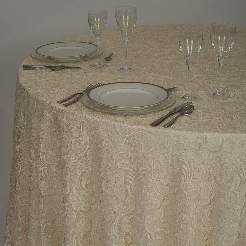 An ivory English lace tablecloth is a delicate and refined table covering featuring intricate lace patterns inspired by English craftsmanship. The ivory hue lends a timeless and elegant quality, while the lace detailing adds a touch of vintage charm. Perfect for formal dining occasions or adding a romantic flair to any setting, this tablecloth creates an atmosphere of classic sophistication with its fine lacework and soft colour palette.