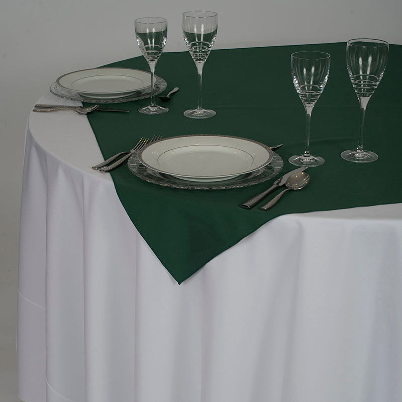 The deep, earthy hue of forest green evokes a sense of tranquility, sophistication, and connection to the outdoors, making it a versatile choice for weddings, banquets or other formal gatherings.
