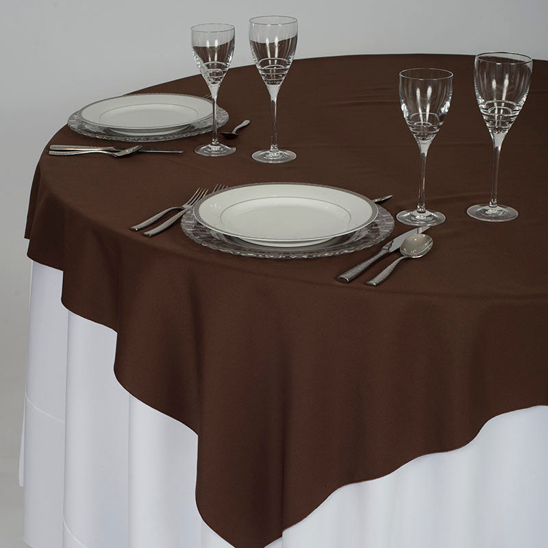 A chocolate brown polyester overlay is a warm, rich fabric that brings depth and sophistication to any decor. The deep, earthy hue of chocolate brown evokes a sense of comfort, elegance, and natural beauty, making it a perfect choice for formal events, weddings, rustic gatherings, or any occasion where you want to create a cozy yet refined atmosphere.