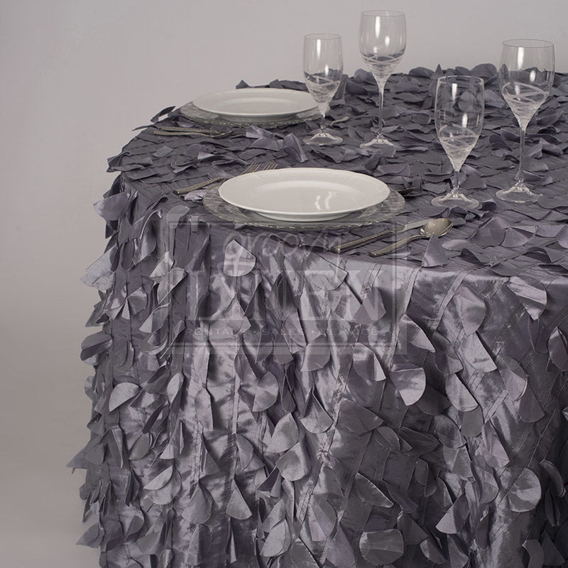A silver taffeta tablecloth with hanging circles is a chic and luxurious fabric that effortlessly combines elegance with modern flair. The sleek silver colour brings a sophisticated, metallic shine, making it a perfect choice for upscale events such as weddings, galas, holiday parties, and formal gatherings. The shimmering surface of the taffeta fabric catches the light, creating a polished, radiant effect that enhances the overall atmosphere.